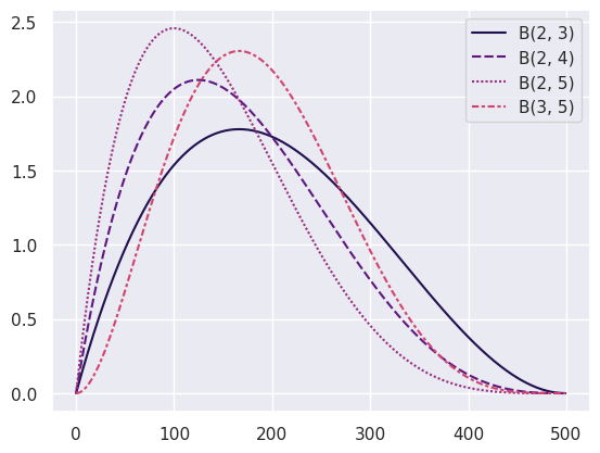 now let’s standardise the distribution of \(q\). \[\int_{0}^{1}(x, y)q^{x}(1-q)^{y}\,\mathop{}\!\text{d}q=1.\] where \(b(x, y)\) is a function of \(x\) and \(y\in\mathbb N\): \[b(x, y)=\int_{0}^{1}t^{x}(1-t)^{y}\,\mathop{}\!\text{d}t.\] formally, we define the beta function with a shift, that is: \[B(x, y)=b(x-1, y-1)=\int_{0}^{1}t^{x-1}(1-t)^{y-1}\,\mathop{}\!\text{d}t.\] hence the \(\beta\) distribution.